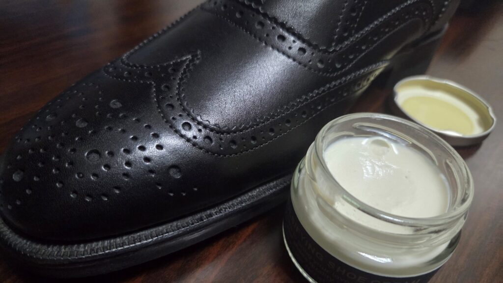 革を不自然にテカらせないため、普段使いの革靴にも使いやすいと感じました。
