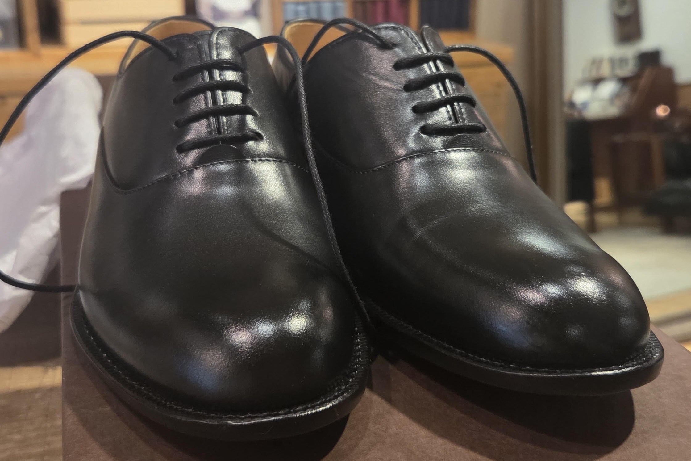 帰宅後に撮影したオックスフォードシューズ