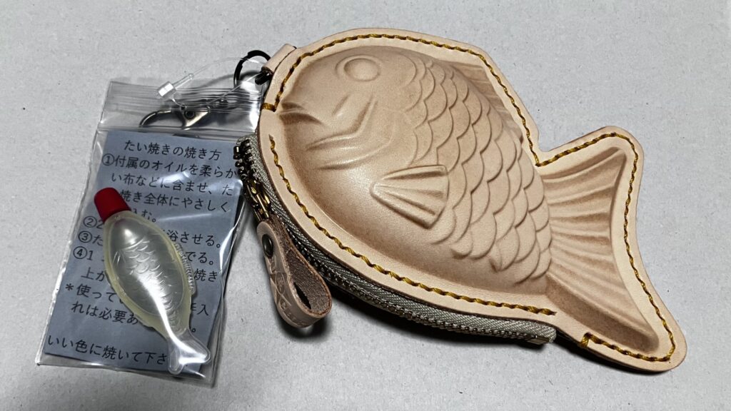 革小物が好きな方はもちろん、革製品を初めて買う方にも向いています。レザー用オイルが付属しているため、すぐにケアを始められるからです。オイルの容器が魚型のたれびんという遊び心も、このたい焼きらしいポイントだと感じました。